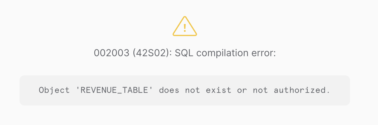 不出所料,当我们尝试运行这段代码时,出现了错误,因为它在我们没有提供表名的情况下虚构了一个表名 -